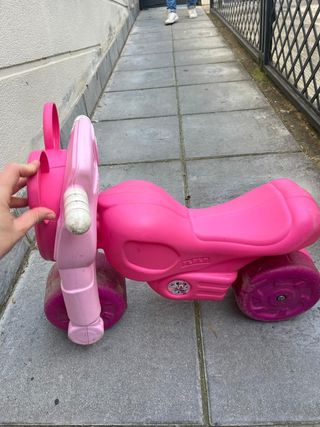 Bicicleta de aprendizaje Chicco Pink Arrow en color rosa. - Ideal para niños de 2 a 3 años. - Diseño sin pedales para fomentar el equilibrio. - Ruedas de goma. - Puños de goma para un mejor agarre. Esta en buen estado aunque tiene unos arañazos en el manillar