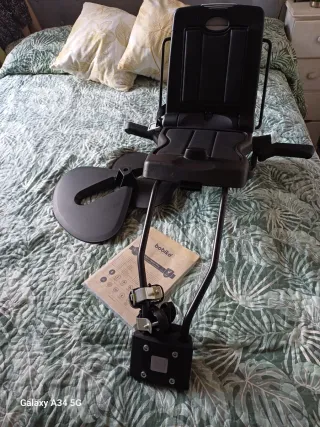 BOBIKE Asiento infantil Classic Junior + trasero Para niños de 6 a 10 años Adecuado de 20 a 35 kg. Con reposapiés ajustable Con soporte (0.326.539/4) Al plegar el respaldo, el asiento infantil se puede convertir en un práctico medio de transporte para sus compras en un instante. - Color negro. - Incluye soporte de montaje. - Manual de instrucciones. Literalmente usado una vez, ya que los niños ya tenían sus 🚲 y no querían ir de pasajeros. Nuevo en decathlon 184 euros.