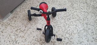 Bicicleta convertible en triciclo para niñ@s de 2 a 4 años. Está en buen estado y lista para usar. - Se convierte fácilmente de bicicleta a triciclo. Los pedales se pueden colocar bajo el sillín para que pueda usarse como bicicleta, mientras que si s colocan los pedales y se giran las ruedas, se convierte en triciclo. - Ideal para niñ@s que están aprendiendo a andar en bicicleta. - Diseño rojo y negro.