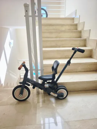 Se puede utilizar de múltiples formas según la edad y las habilidades del niño. Se adapta al crecimiento del niño, al tiempo que le facilita a aprender a montar en bicicleta. Gracias a sus diferentes etapas, le permitirá utilizar la bicicleta durante más tiempo. Cómodo asiento con respaldo regulable. Cinturón de seguridad de 5 puntos. Manillar regulable con empuñaduras de goma antideslizantes. Provisto de un sencillo sistema que permite transformar la bicicleta sin herramientas y ajustarla a la edad del niño. Plegado compacto. Desde los 12 meses hasta los 6 años. Peso máximo del niño: 25 kg.