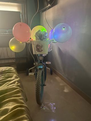 Bicicleta infantil BTwin en color rosa con diseño de unicornio, ideal para niños y niñas de 5 a 7 años. Perfecta para iniciarse en el mundo del ciclismo. Un año, apenas uso, prácticamente nueva Entrega en mano Mieres - Asturias - Cuadro de acero. - Ruedines de aprendizaje incluidos. - Frenos V-brake. - Sillín ajustable en altura.