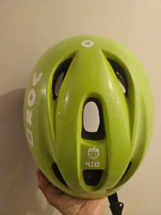 Casco de bicicleta para niños de 4 o 5 años, casi nuevo. Su color verde brillante lo hace muy visible. - Diseño aerodinámico. - Acolchado interior para mayor comodidad. - Cierre ajustable.