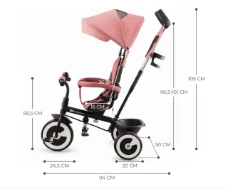 Kinderkraft Aveo Bebé, Plegable, Trike, Bicicleta para Niños, Triciclo Evolutivo, Sin Pedales, Bicicleta Bebe, con Accesorios Práctico, Dos Cestas, 9 Meses a 25 kg, Rosa MarcaKinderkraft MaterialPoliéster TamañoM Peso del producto10,8 Kilogramos Dimensiones del producto106,5l. x 50,5an. x 112al. centímetros SubmarcaAveo ✅ MULTIFUNCIONAL: el triciclo plegable se puede configurar según la edad, con el asiento a favor de la marcha o a contramarcha. Se puede usar de diversas maneras en función de las habilidades motoras del niño. Está indicado para niños de entre 9 meses y 5 años. ✅ APRENDIZAJE Y DIVERSIÓN: el niño aprenderá a pedalear