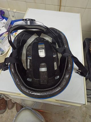 Casco de bicicleta infantil de la marca Oxelo, en color turquesa. Está en buen estado, aunque tiene algunas pequeñas marcas de uso. - Marca: Oxelo - Color: Turquesa - Talla: 5 años - Ideal para niños