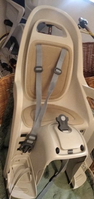 En perfecto estado, poco usado y guardado en trastero por lo que no se ha estropeado con el sol o lluvia. Este portabebés se adapta a bicicletas que no tienen portaequipajes, por lo tanto, se puede instalar en algunas BTT y bicis polivalentes. Comprueba previamente la compatibilidad (diámetro tubo cuadro) Adecuado para niños de 9 meses a 4/5 años y de menos de 22 kg. Adecuada para tubos de 28-40 mm con un módulo de fijación en el cuadro. - Diseño ergonómico con acolchado. - Cinturones de seguridad ajustables. - Soporte resistente para montaje en bicicleta.