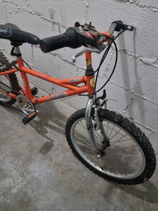 Poco uso y muy cuidada. Para niños 5-9 años. CUADRO: Acero 20” HORQUILLA: 20” Suspensión MANILLAR: Pintado Doble Altura DIRECCION: 1” Rosca BIELAS: Monoplato 150mm FRENOS: V-brake aluminio CAMBIO: Shimano TY-21 MANDOS: RevoShift 6vel PIÑON: Shimano 6vel POTENCIA: Acero CUBIERTAS: 20×1,95” RUEDAS: Llantas de aluminio con perfil pulido y cierre rápido delantero