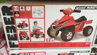 Quad eléctrico Feber Quad Racy de 6V, sin estrenar. Ideal para niños de 1 a 3 años. - Batería de litio de 6V. - Peso máximo soportado: 25 kg. - Velocidad máxima: 3 km/h. - Dimensiones: 60.5 x 42 x 44 cm.