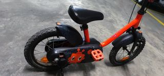 Bicicleta para niñ@s BTWIN de 14 pulgadas, en buen estado. - Ideal para principiantes. - Color naranja y negro. - Incluye timbre y accesorios.