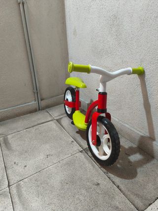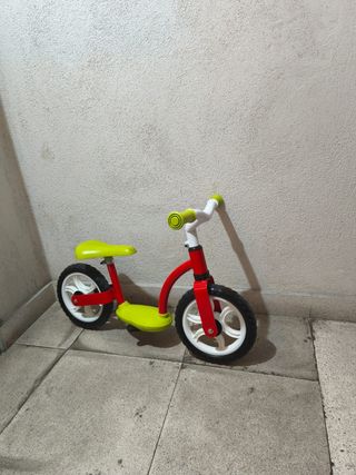 Muy poco uso por tener custodia compartida. Su primera bicicleta sin pedales: Ayuda al niño a mantener el equilibrio necesario para caminar sobre dos ruedas, facilitando así el paso a una bicicleta con pedales de verdad. Fabricada en metal ultraligero, tiene el manillar y el sillín regulables en altura, para adaptarse a la complexión del niño. Apta para cualquier superficie. Las ruedas no necesitan inflado Ultraligera Edad de uso: desde los 2 a los 5 años (min 85 cm; max 25 Kg.) Dimensiones: 46 x 56 x 68 cm Color rojo metalizado
