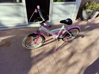 Bicicleta para niña en color rosa, ideal para aprender a pedalear. Se encuentra en buen estado. - Ruedines incluidos. - Cesta delantera. - Sillín y asiento trasero.