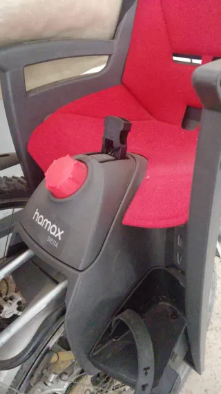 Silla para bicicleta marca Hamax modelo Siesta, ideal para transportar niños de forma segura, y poder reclinar al bebé/niño. - Color rojo y negro. - Diseño ergonómico. - Sistema de anclaje integrado.