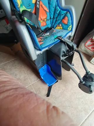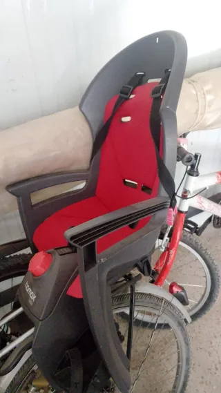 Sillita para transportar niños en bicicleta. - Diseño ergonómico. - Cinturón de seguridad de 3 puntos. - Reposapiés ajustables. - Material resistente y fácil de limpiar.