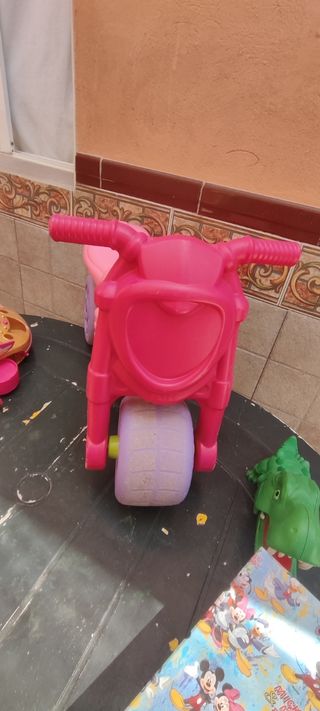 Moto de juguete de color rosa brillante, ideal para los más pequeños. - Diseño tipo motocicleta. - Ruedas resistentes para jugar en interiores y exteriores.