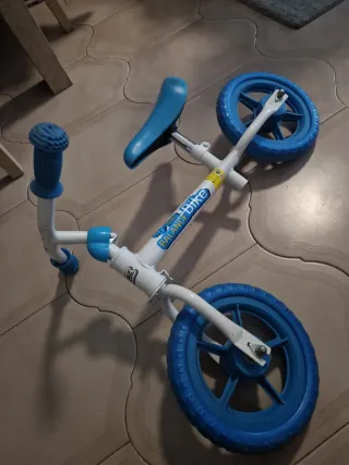 Bicicleta de equilibrio para niños, ideal para aprender a montar. - Marco blanco. - Ruedas y sillín azules. - Puños texturizados para un mejor agarre. Negociable