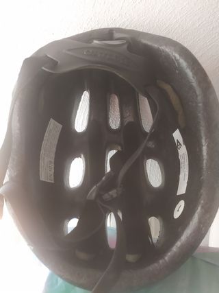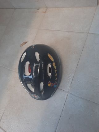 Casco para bicicleta infantil en color granate. Está en buen estado, aunque presenta algunas pequeñas marcas de uso. - Talla para niño. - Color granate. - Diseño sencillo.