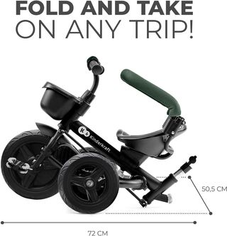 Estado: Nueva en su caja, se ha sacado para las fotos. Para envior por favor no elegir INPOST, para recogida en persona en sangonera la verde. Kinderkraft Aveo Bebé, Plegable, Trike, Bicicleta para Niños, Triciclo Evolutivo, Sin Pedales, Bicicleta Bebe, con Accesorios Práctico, Dos Cestas, 9 Meses a 25 kg, Verde - Diseño plegable para facilitar su transporte y almacenamiento. - Estructura robusta y segura. - Capota para proteger del sol.