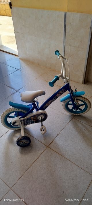 bicicleta de princesas para niña de 5 años con pintura en perfecto estado y caballete, los frenos funcionan a la perfeccion. incluye timbre de princesas.