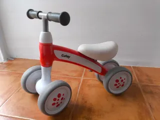 Bicicleta de aprendizaje QPlay Cutey, ideal para niños de 1 a 3 años. Diseñada para fomentar el equilibrio y la coordinación. - Color rojo y blanco. - Asiento acolchado. - Ruedas de goma.