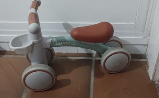 Preciosa bicicleta sin pedales UMAtoll para niñ@s a partir de 1 año. Está en muy buen estado, apenas usada. - Color verde menta pastel y marrón. - Asiento cómodo y acolchado. - Manillar ergonómico. - Cesta delantera. - Asiento ajustable #regalo #navidad #reyes #papa_noel