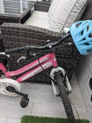 Bicicleta infantil de color rosa, ideal para niñas de 5 años. Se encuentra sin usar. - Diseño llamativo en color rosa. - Ruedines incluidos para mayor estabilidad.