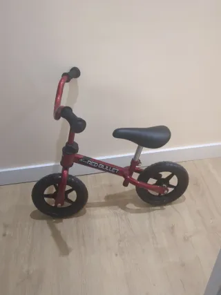 Bicicleta de equilibrio de color rojo, ideal para niños/as de entre 2 y 4 años. - Marco de metal. - Ruedas negras. - Asiento negro.