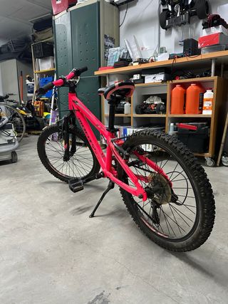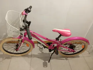 Bicicleta infantil de color rosa, en buen estado.Con: - Cesta delantera.( Está es la única que está en peor estado, pero puede quitarse) - Timbre. - Soporte para botellas. - Guardabarros. - Pata de cabra. - Cambio de marchas Shimano