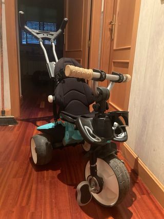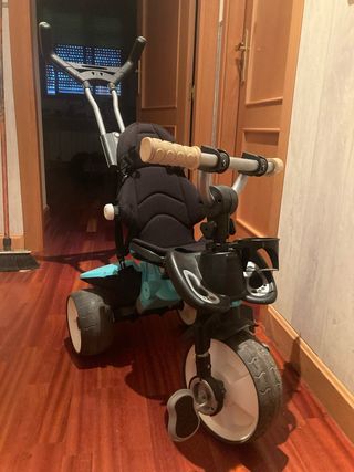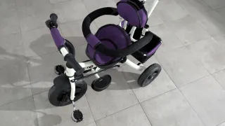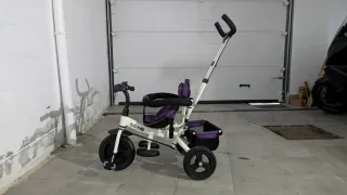 Triciclo evolutivo con diseño moderno y funcional, ideal para acompañar el crecimiento de los más pequeños. - Asiento acolchado y con arnés de seguridad. - Barra de empuje desmontable. - Reposapiés. - Cesta de almacenamiento. - Ruedas resistentes. - poquísimo uso.