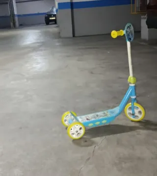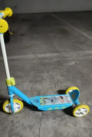 Patín de tres ruedas con diseño de Toy Story, ideal para niños. - Personajes de Toy Story. - Ruedas de color amarillo. - Plataforma azul.