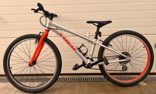 Bicicleta infantil Trek Wahoo 24 de aluminio. - Cuadro de aluminio ligero. - Ruedas de 24 pulgadas. - Frenos fiables. - Diseño deportivo en plata y naranja. - Para niños/as de 8 a 12 años. - Negociable