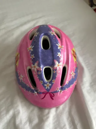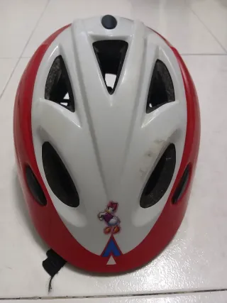Casco de bicicleta para niñ@s. Está en buen estado aunque tiene una pequeña raja, como se ve en las fotos, pero solo es exteriormente. La protección está intacta. Diámetro máximo aproximado 51 cm - Diseño ventilado.
