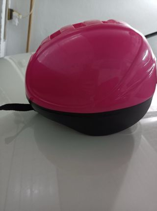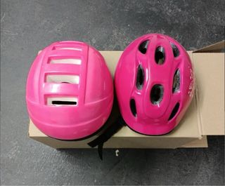 Casco de protección para bicicleta en color rosa, diseñado para niñas. Cuenta con un diseño moderno y ventilado. - Color rosa vibrante. - Múltiples orificios de ventilación. - Cierre de seguridad. Vendo los dos juntos por solo 10 euros