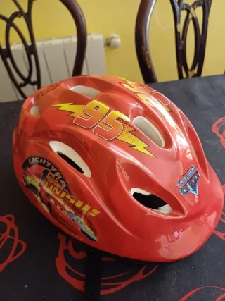 Casco de bicicleta para niños con diseño de Cars. - Color rojo brillante. - Decorado con el número 95 y Rayo McQueen. - Logo de Cars en un lateral.