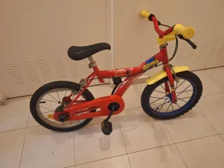 Bicicleta BH de color rojo, ideal para niñ@s. Fue reparada hace 2 años. - Ruedas de 16 pulgadas. - Sillín ajustable. - Guardabarros delantero y trasero. - Portabultos trasero.