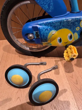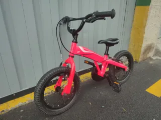 Bicicleta infantil Decathlon, ideal para niños de 3 a 4 años. Incluye ruedines para facilitar el aprendizaje. - Ruedines incluidos.