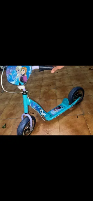 Patinete infantil con diseño de Frozen. - Color azul. - Ilustraciones de Elsa y Anna. - Ruedas resistentes.