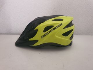 Casco de bicicleta Rockrider en negro y amarillo flúor. Talla S (52-55 cm)
