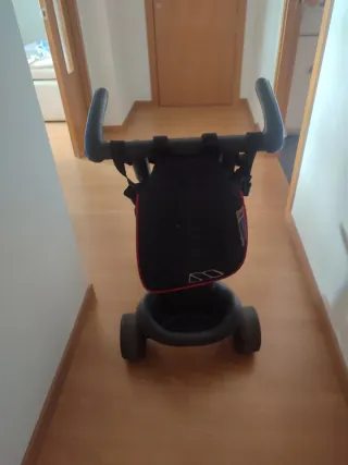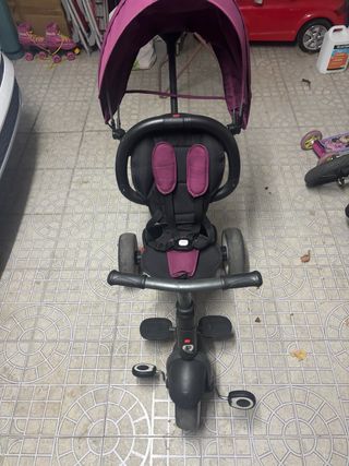 Triciclo infantil con capota protectora. - Asiento acolchado con arnés de seguridad. - Reposapiés. - Ruedas resistentes.