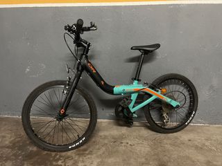 Bicicleta WRC de 20 pulgadas, ideal para niños. Su color azul turquesa la hace muy llamativa. - Cuadro de aluminio ligero. - Frenos V-Brake. - Ruedas de 20 pulgadas. - Buen estado. Con 3 años de antigüedad - Con pata de cabra incluida. - No hago envío