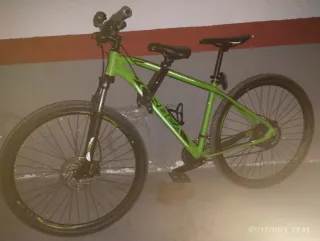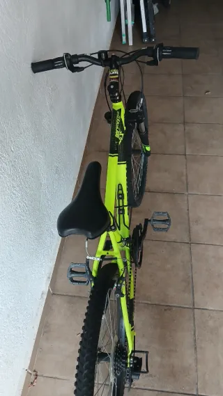 Bicicleta Rockrider de 24 pulgadas, ideal para niñ@s. - Color verde lima y negro. - Ruedas de 24 pulgadas en buen estado. - Frenos V-brake. - Sillín. - Cambios shimano. - 18 velocidades. - Suspensión delantera en perfecto estado. - Pata de cabra.