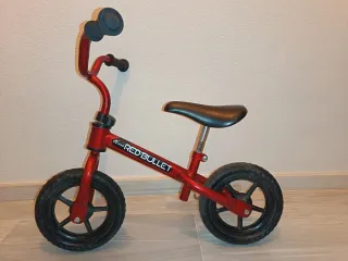 Bicicleta de equilibrio Red Bullet para niños, de color rojo brillante. Ideal para iniciarse en el mundo de las dos ruedas. - Marco de metal resistente. - Ruedas de goma. - Puños de goma para un mejor agarre.