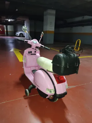 Moto estilo Vespa en color rosa, ideal para los más pequeños. Perfecta para paseos divertidos. - Diseño clásico. - Asiento cómodo. - Ruedines para mayor estabilidad. - Radio con musica
