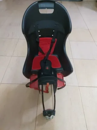 Silla para bicicleta de la marca Polisport, diseñada para transportar niños pequeños. - Color negro y rojo. - Arnés de seguridad de 3 puntos. - Soporte de montaje incluido.