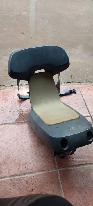 Sillín para niños con algún roce del uso y de guardarlo y posapies de plástico