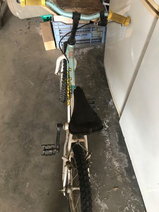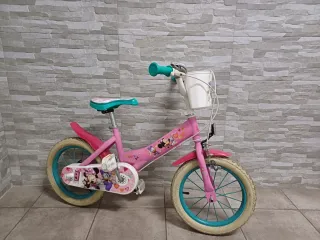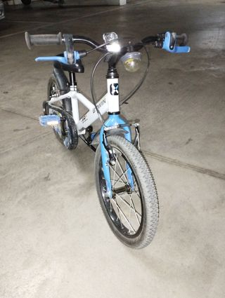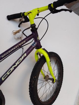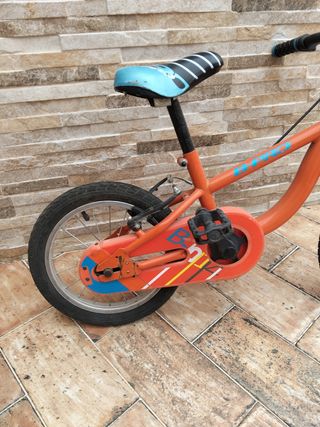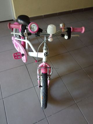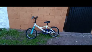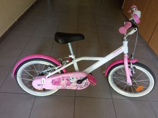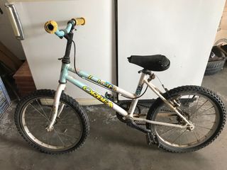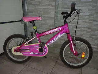 bicicleta de 16 pulgadas para niños o niña de entre 3 y 7 años. tiene algunos roces pero está muy bien y es una bici muy bonita. tiene también ruedines por si se los quieren poner, pero se puede aprender directamente sin ellos en 15 minutos gracias a la estabilidad de la bicicleta. el sillín tiene también un agarradero para los padres y así facilitar el aprendizaje dando seguridad al niño/niña