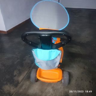 Triciclo evolutivo de la marca Injusa, diseñado para acompañar el crecimiento del niño. Solo tiene una varilla rota pero no afecta en el funcionamiento de la capota. Precio original 150 euros - Estructura robusta y segura. - Asiento cómodo y ergonómico. - Ruedas resistentes para diferentes superficies. - Diseño moderno y atractivo.