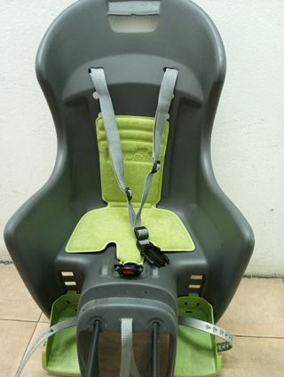 Asiento infantil para bicicleta, en buen estado. Ideal para llevar a los más pequeños de forma segura y cómoda. - Se adapta fácilmente a la mayoría de bicicletas. - Incluye cojín acolchado para mayor confort. - Estructura de plástico resistente y duradero. - Sistema de correas de seguridad.