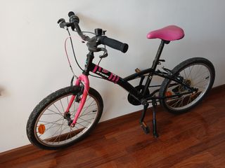 Bicicleta Btwin en color rosa y negro, ideal para niñas.Venta en persona - Cuadro Btwin. - Ruedas de 20 pulgadas. - Sillín rosa. - Frenos. - Pedales.