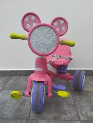 Triciclo de Minnie Mouse, ideal para los más pequeños. Diseñado para acompañar el crecimiento del niño. - Color rosa con detalles de Minnie Mouse. - Empuñaduras de color verde. - Ruedas de goma. - Incluye cinturón de seguridad.