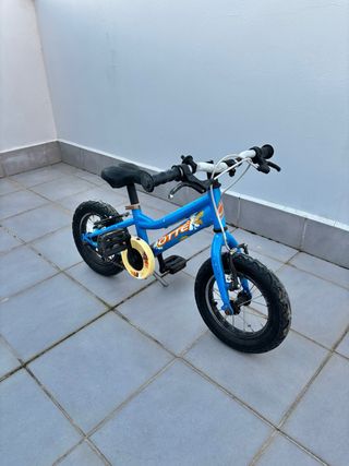 Esta como nueva lo a usado un par de veces las rueda son de 15 pulgada para niño a partir de un año con sillin regulables