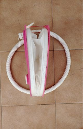 Bomba inflador de piscina para niños, en color rosa. Es una bomba manual, perfecta para inflar colchonetas,piscinas, o juguetes hinchables. - Bomba manual para piscinas infantiles. - Color rosa. - Incluye tubo de inflado y acesorios de varias medidas de válvula de aire.